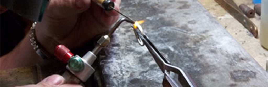 We can clean, polish, re-tip prongs, solder, size, insert sizing beads, remove or replace diamonds or gemstones, replace lobster clasps or spring rings, re-shape rings, replace half or full shanks, tighten safety clasps on bracelets, restring or re-glue pearls, replace settings, and supply posts or backings for gold and platinum. We consider ourselves goldsmiths, but we are equally skilled to work on platinum.